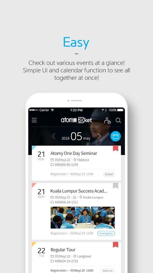 Atomy Ticket — приложение, которое содержит информацию о различных событиях, включающих