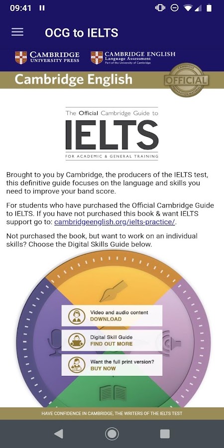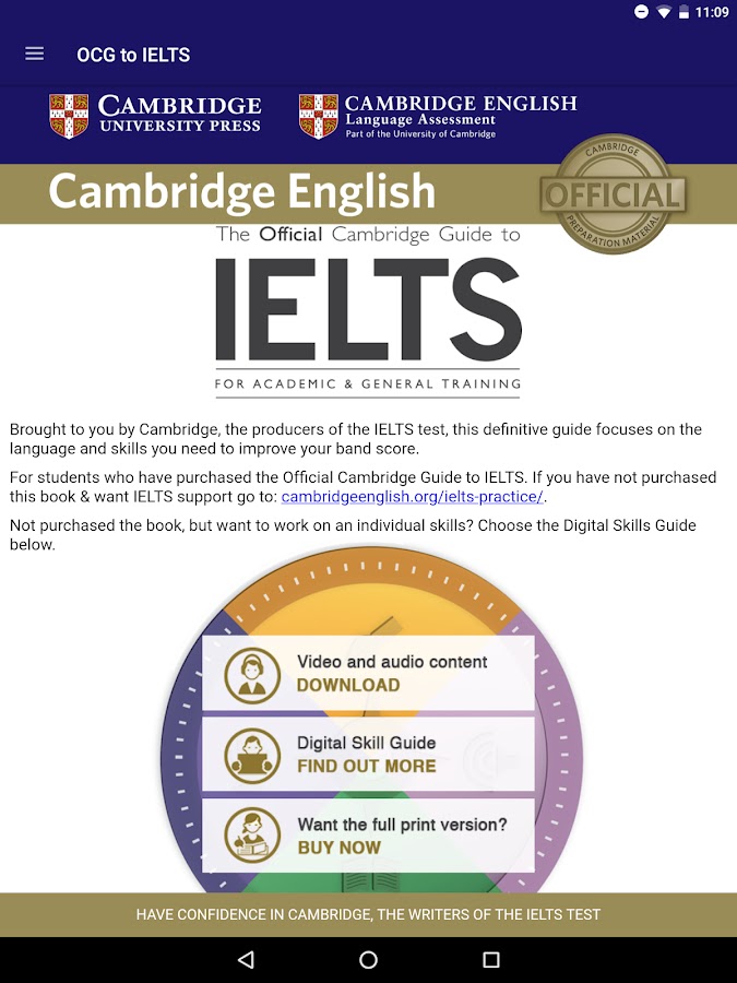 Это приложение предназначено для студентов, которые приобрели полное печатное Официальное руководство Кембриджа по IELTS. Если вы еще не приобрели эту книгу и ищете поддержку IELTS, посетите сайт www.cambridgeenglish.org/ielts-practice/.
