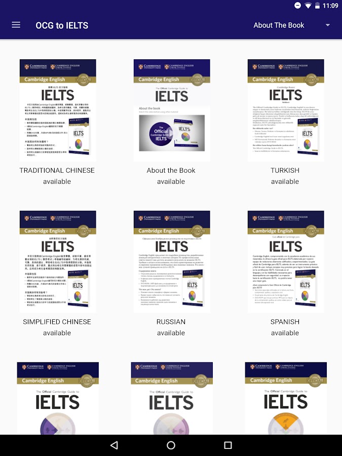 — Краткое введение в Официальное Кембриджское руководство по IELTS на арабском, китайском, японском, корейском, итальянском, русском, испанском и турецком языках.