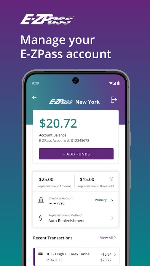 Tolls NY — единственное официальное авторизованное приложение для клиентов E-ZPass NY и Tolls by Mail, позволяющее легко управлять счетами и совершать платежи. Скачать сегодня.
