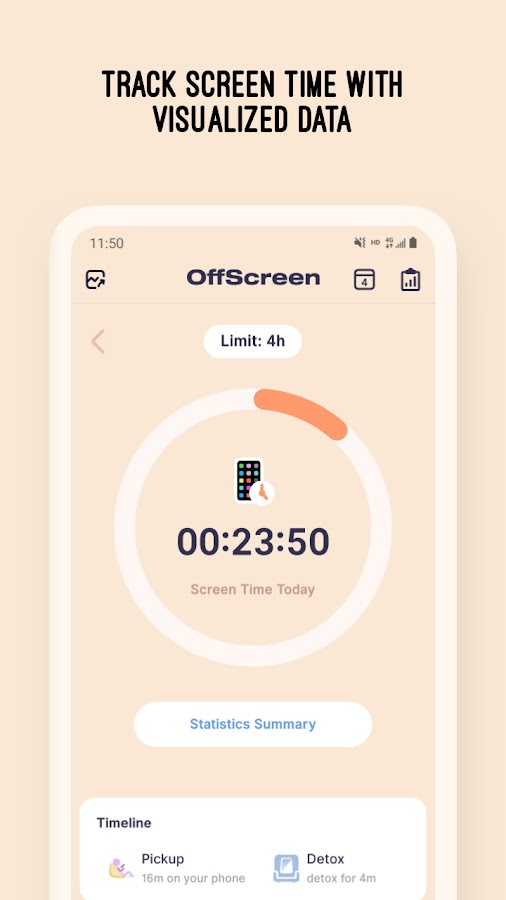 OffScreen помогает отслеживать использование телефона и позволяет сосредоточиться.