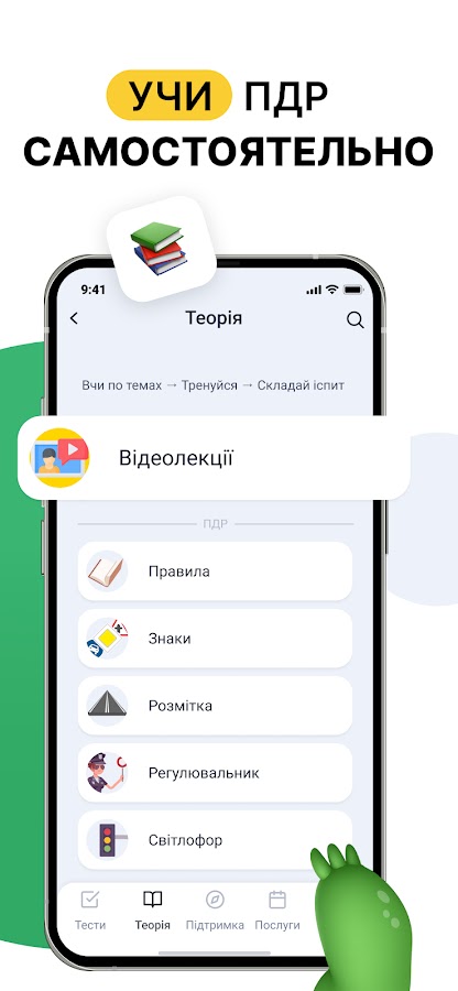 С нашим приложением Новые Официальные тесты вы получаете доступ к тестам ПДД 2025, теоретическому материалу, включая видеолекции и объяснения от экспертов. Также доступен полный каталог дорожных знаков Украины с пояснениями – предупредительные, запрещающие, информационно указательные, сервисные и другие. Знаки сгруппированы по категориям, так что изучать их легко и удобно.