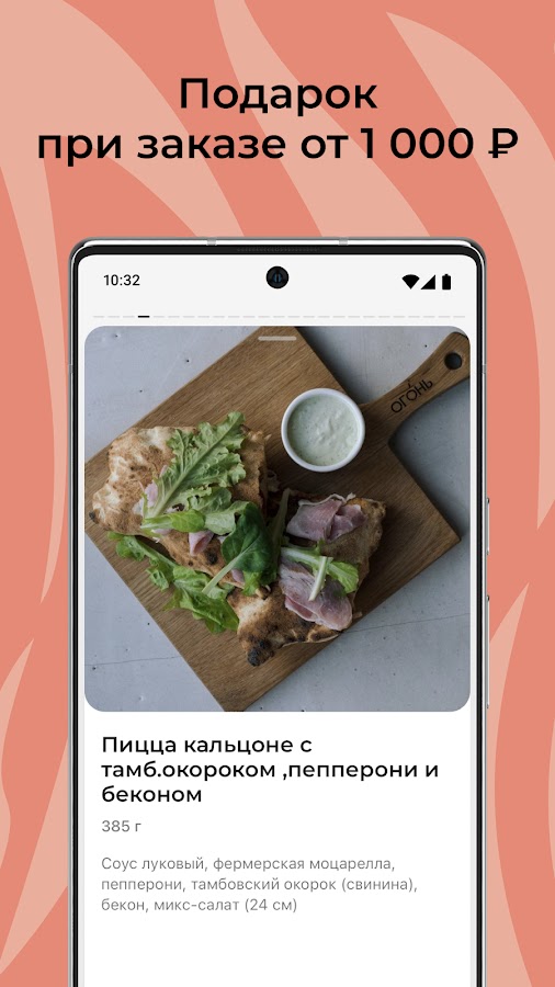При заказе от 1000 рублей, пицца кальцоне с тамбовским окороком в подарок