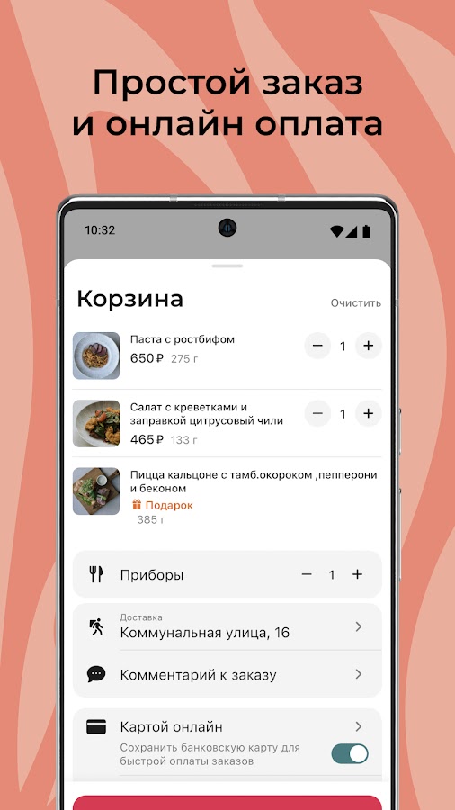 Собственная доставка, отслеживание курьера в режиме онлайн.