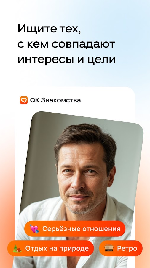 Знакомиться, общаться, искать друзей, ходить на свидания, флиртовать, влюбляться и строить отношения — всё это бесплатно и безопасно можно делать в приложении ОК Знакомства!