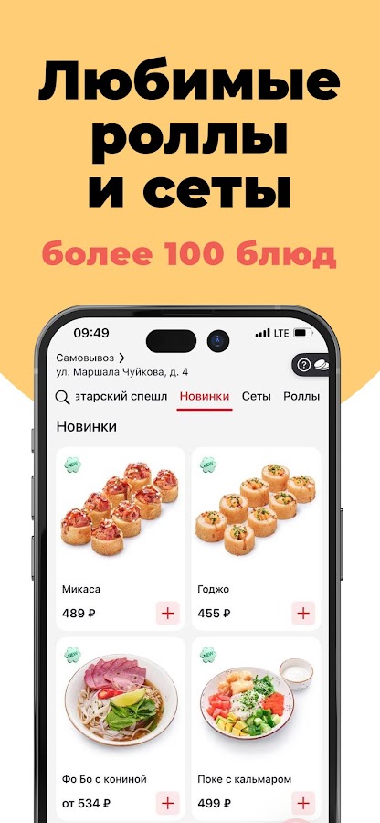 Помимо блюд японской кухни мы с радостью приготовим для вас экзотические воки с разными начинками, ароматную пиццу, горячие и холодные супы, свежие и сытные салаты, нежные десерты.
