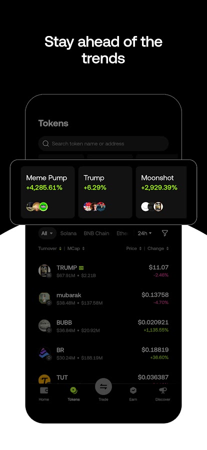 ● Тенденции токенов, данные о торговле в реальном времени и рыночные возможности в одном месте