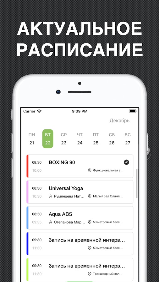 – Актуальное расписание: групповых и детских тренировок
