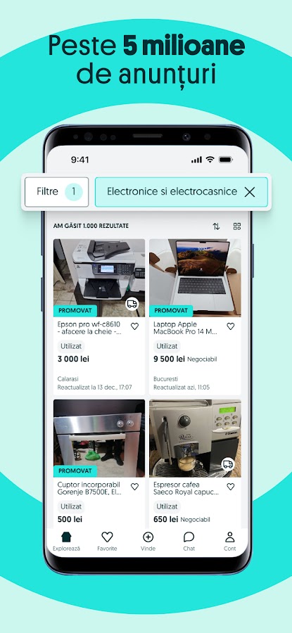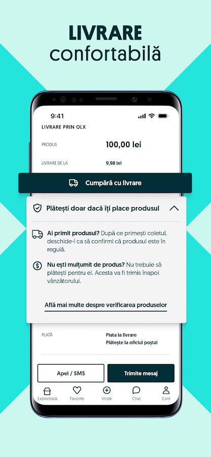 Вы продаете товар? Создавать, редактировать и обновлять объявления очень просто. Легко рекламируйте свои объявления о покупке и продаже в социальных сетях. Поделитесь ими с друзьями и семьей через приложения для обмена сообщениями 📤 для более широкой видимости. OLX позволяет вам быстро и безопасно совершать покупки в Интернете, покупать с помощью карты и пользоваться лучшими предложениями в Румынии.