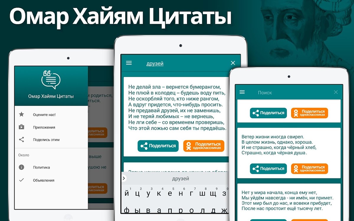Скачайте приложение Омар Хайям Цитаты (Лучшие) для Android бесплатно - последняя версия (23.02) уже доступна для установки на ваш телефон или планшет.
