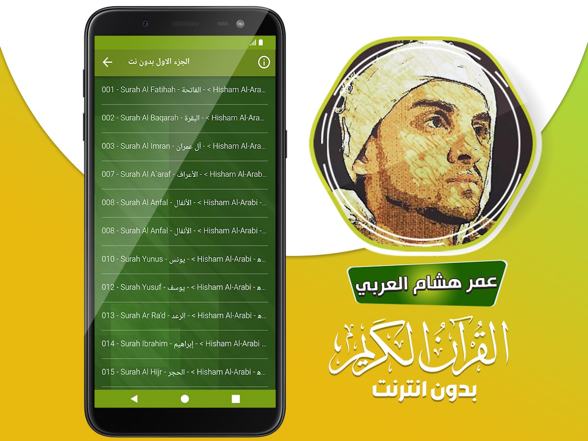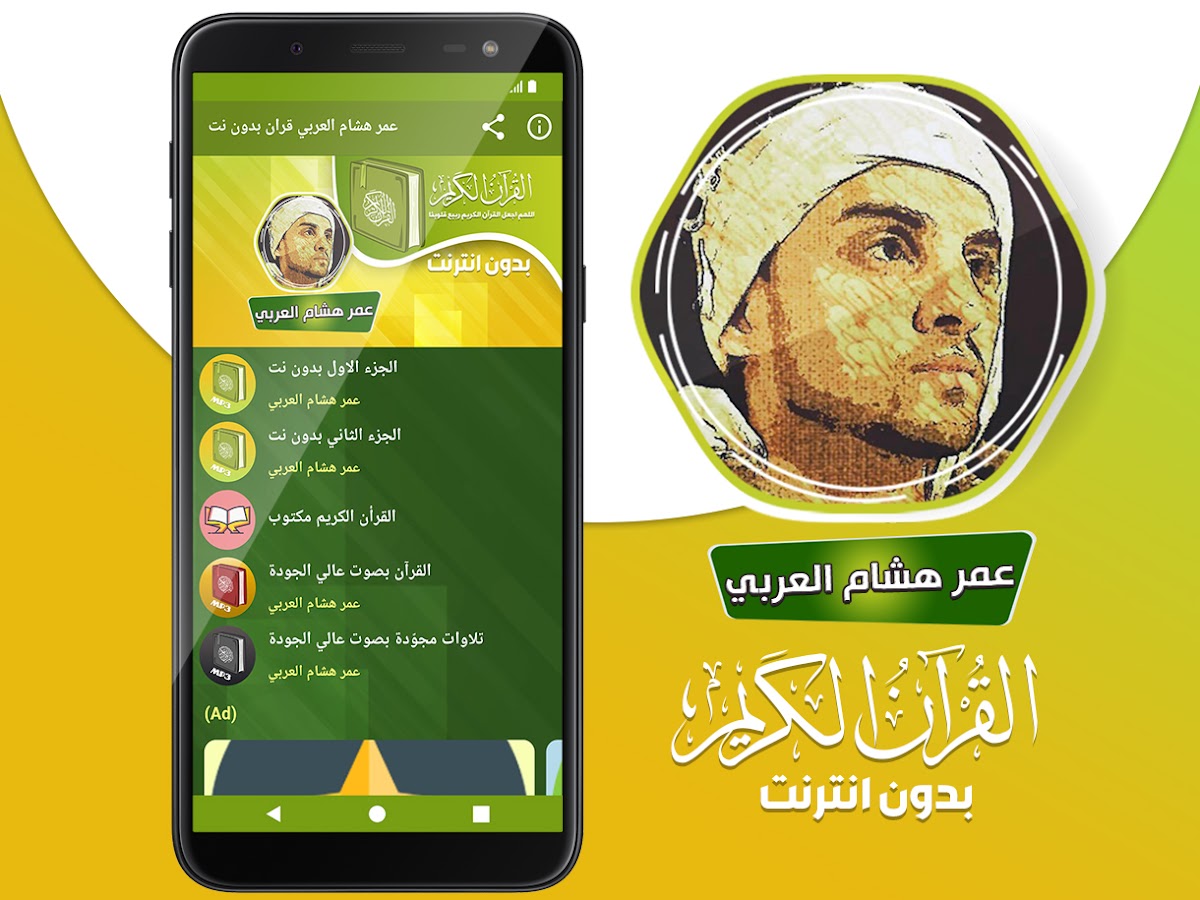 🔹 Это приложение содержит Священный Коран с голосом чтеца Омара Хишама Аль Араби Офлайн.