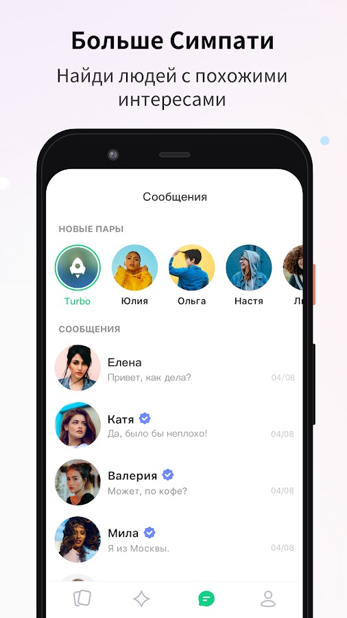 — В Оми вы можете начать общение только в том случае, если симпатия взаимна. Это значительно уменьшает риск беспокойства со стороны не интересующих вас пользователей, и дает возможность общаться только с теми, кто заинтересован в вас!