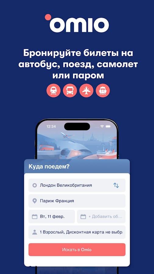 Описание Omio поезд, автобус и самолет