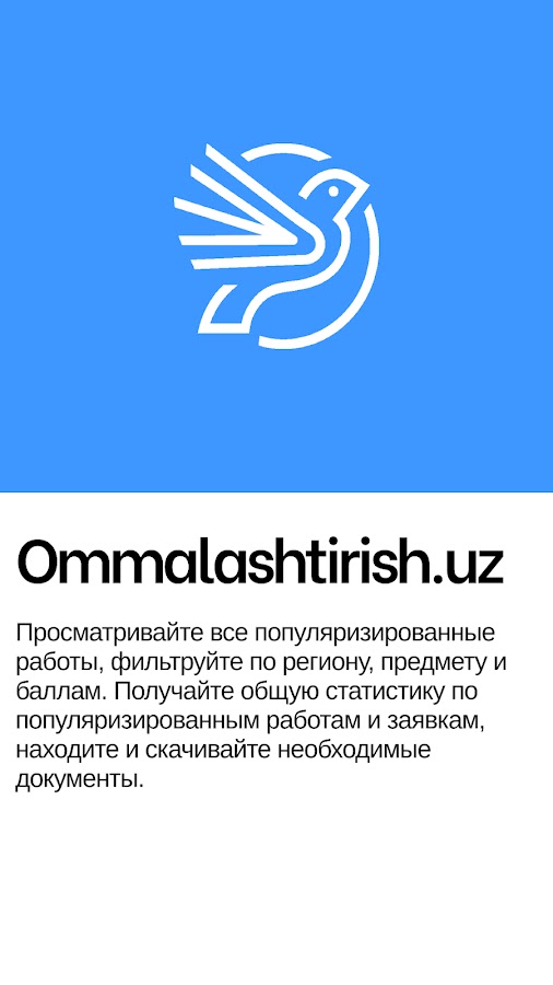Скачайте приложение Ommalashtirish.uz для Android бесплатно - последняя версия (1.0.11) уже доступна для установки на ваш телефон или планшет.