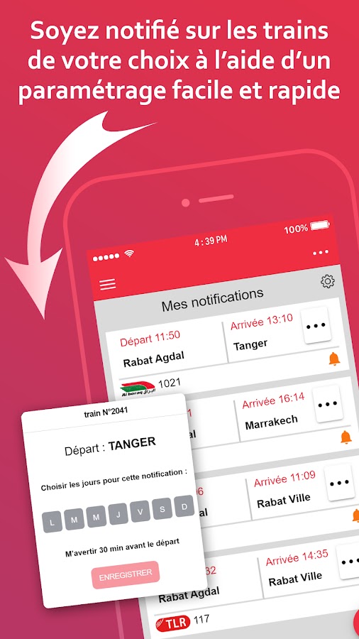Для облегчения мобильности, новое приложение ONCF TRAFFIC позволяет получать информацию в реальном времени об условиях движения и движения вашего поезда.