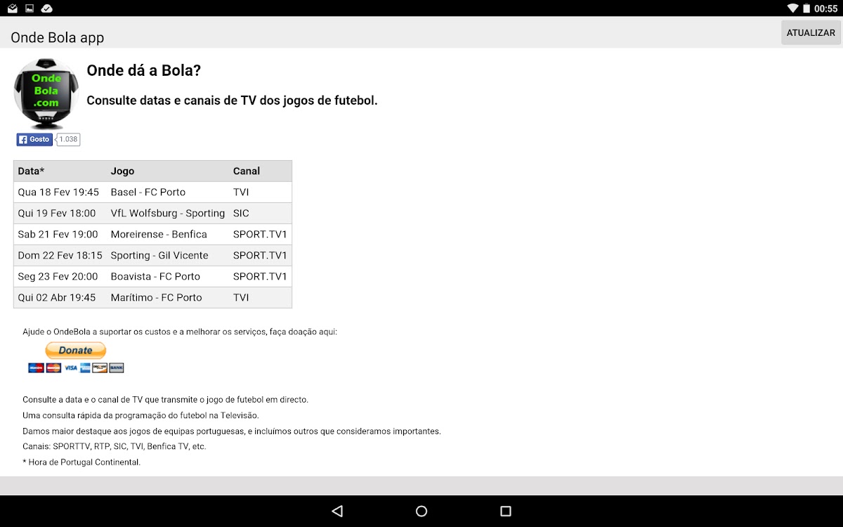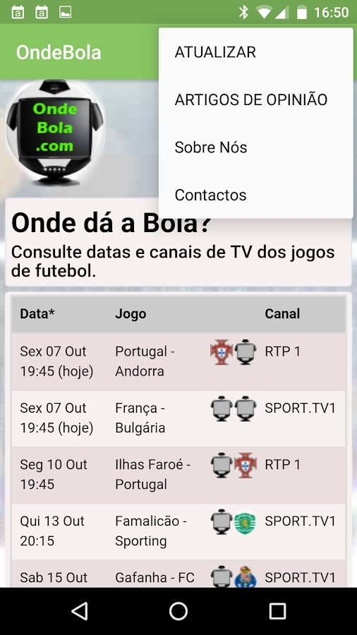 OndeBola, Куда летит шарик? — Проконсультируйтесь с датой, временем и телеканалом, который транслирует ФУТБОЛЬНЫЙ матч в прямом эфире. Быстрая консультация по футбольным программам на телевидении.