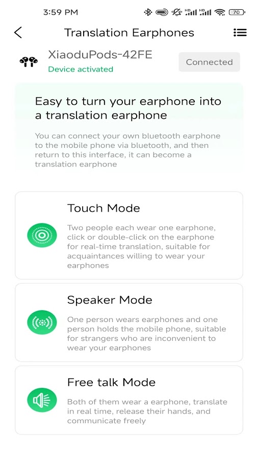 При использовании с соответствующими Bluetooth-устройствами, такими как Bluetooth-наушники, Bluetooth-модемы и т. д., реализована функция голосового перевода. В настоящее время поддерживается более 150 языков. Офлайн-перевод доступен на 16 языках: китайский (упрощённый), английский (США), японский, корейский, французский, немецкий, испанский, русский, китайский (традиционный), тайский, арабский, хинди, вьетнамский, португальский, индонезийский, итальянский.