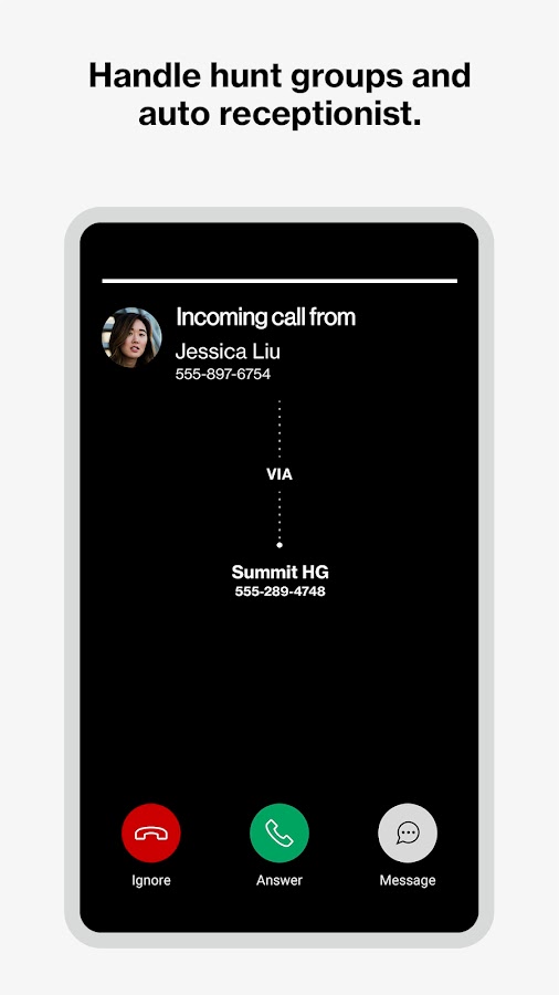 * Собственный номеронабиратель смартфона. Подключайте мобильных сотрудников к офису и клиентам с помощью встроенной клавиатуры смартфона — через надежную и отмеченную наградами сеть Verizon.