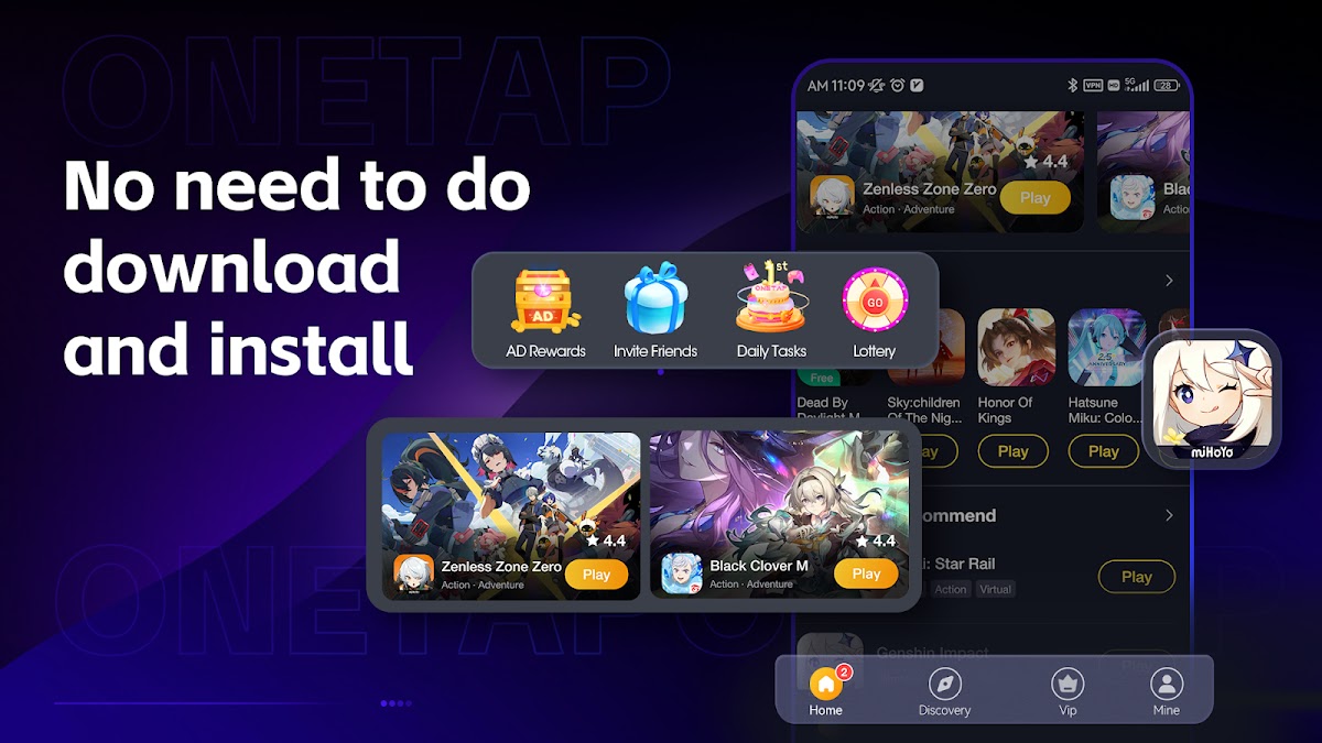 Играйте без ограничений. Независимо от того, используете ли вы устройство с низкими характеристиками или ограниченное хранилище, OneTap обеспечит вам первоклассный игровой процесс без компромиссов. Попрощайтесь с долгой загрузкой и надоедливыми обновлениями. С OneTap ваши игры всегда будут обновлены и готовы к запуску.