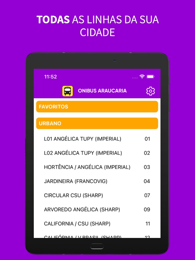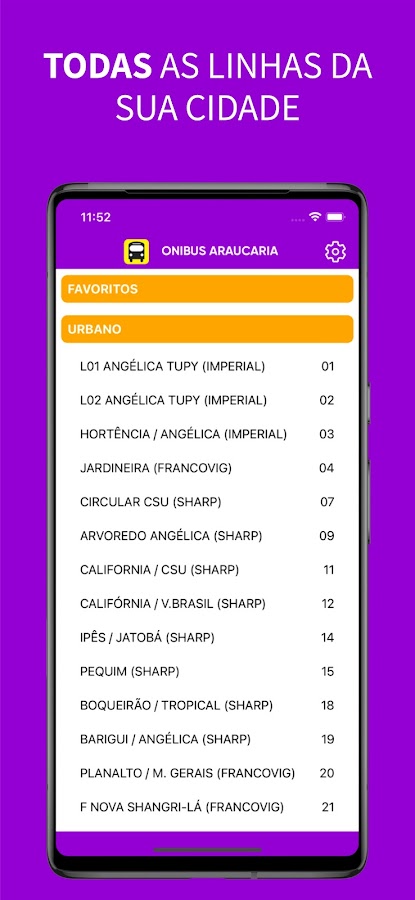 Теперь пользователи автобусов Araucária могут просматривать расписание на своих мобильных телефонах через это приложение. Приложение показывает таблицу со всеми расписаниями автобусов.
