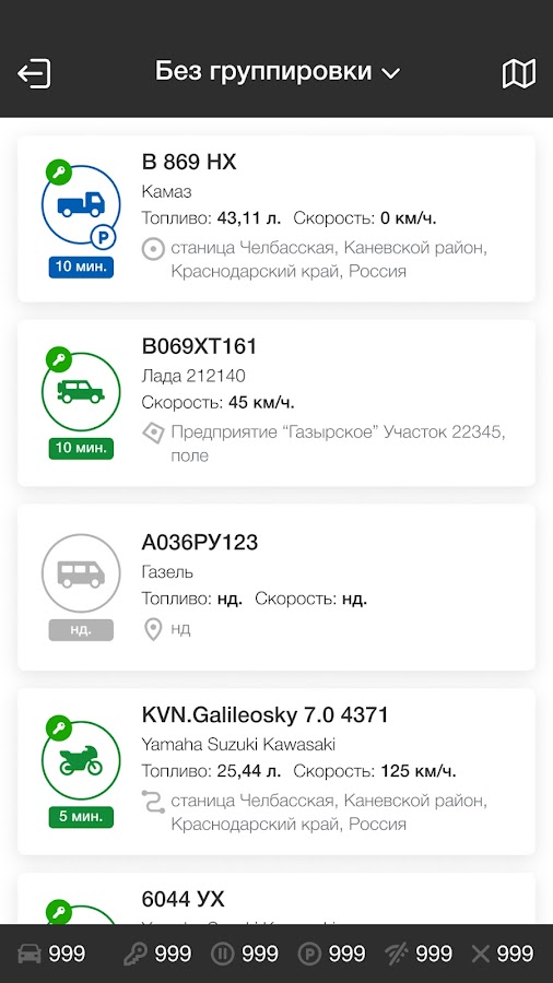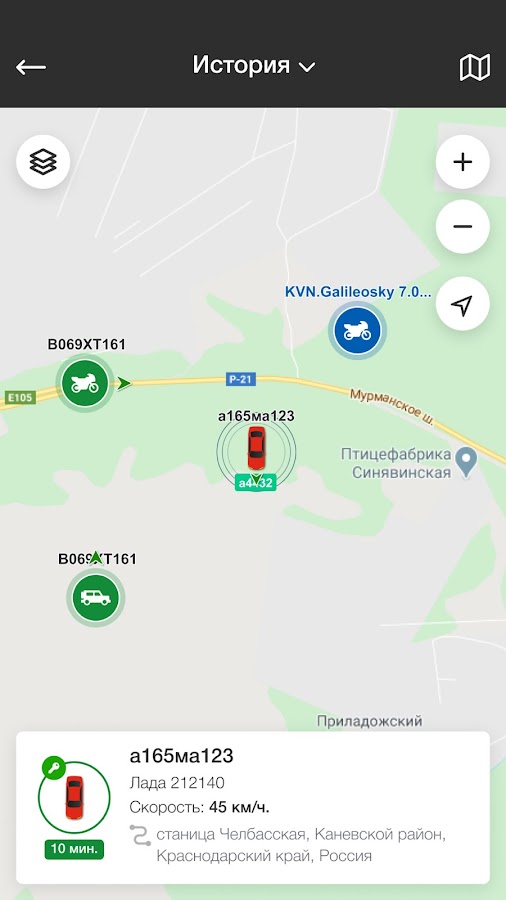 Мобильное приложение для спутникового ГЛОНАСС мониторинга транспорта, служит для оперативного контроля за передвижением техники, скоростным режимом, ежедневными пробегами, стоянками, уровнем топлива, расходом топлива, оборотами двигателя, напряжением бортовой сети, работой навесного оборудования, температурой и множеством других подключенных параметров. Приложение удобно для использования в повседневной работе для точного планирования и управления работой транспорта и спецтехники, контроля проведения технического обслуживания, своевременности выполнения производственных задач, а также предотвращения левых рейсов и воровства топлива.