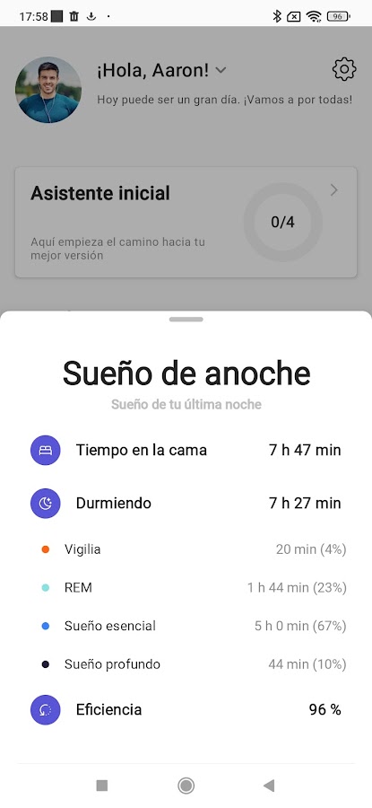 Получите доступ к панели мониторинга сна, которая отображает общее количество часов сна, время, проведенное в постели, эффективность сна и фазы сна (легкий, глубокий, быстрый и бодрствование). Улучшите своё самочувствие, лучше понимая процесс восстановления.