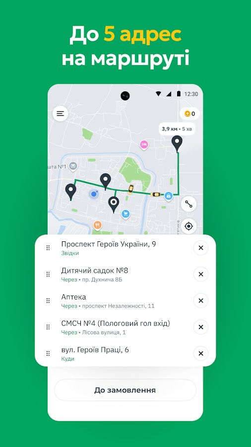 • До 5 точек в маршруте — планируйте сложные поездки без лишних звонков.