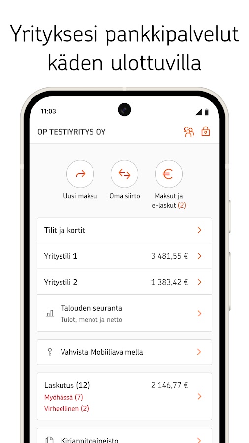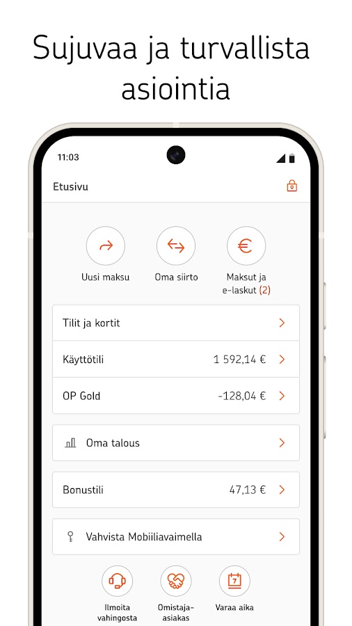 OP mobile — это простой и безопасный способ решать самые важные банковские и страховые вопросы в любом месте. Банковские услуги, необходимые вашей компании, также находятся в пределах досягаемости. С помощью мобильного ключа вы идентифицируете себя в цифровых сервисах OP и службах органов власти, а также подтверждаете платежи за онлайн-покупки.