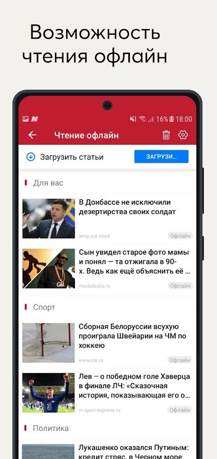 Opera News позволяет помечать и загружать интересные статьи, чтобы прочитать позже — даже без подключения к интернету!