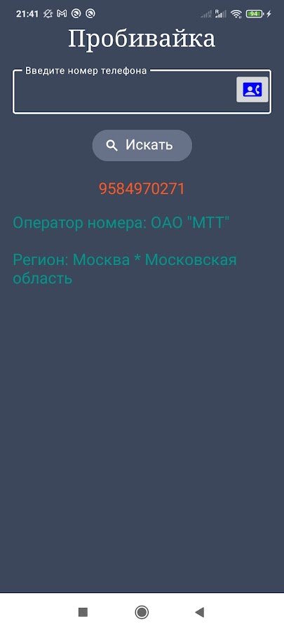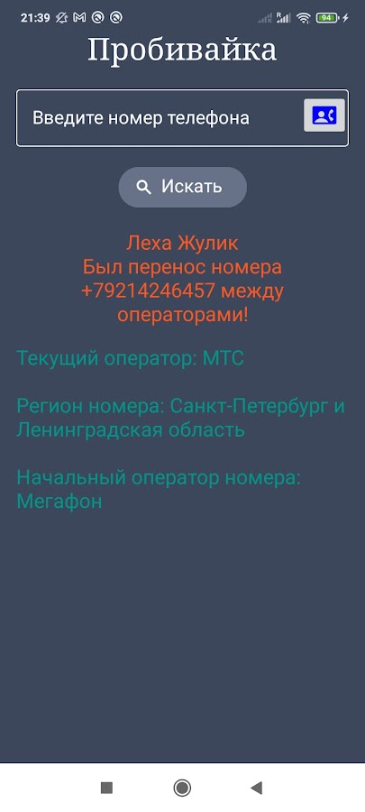 При смене абонентом мобильного оператора связи (MNP) приложение покажет первого владельца телефонного номера и текущего владельца телефонного номера, а также регион.