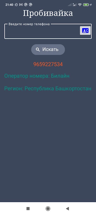 Позволяет определить (чей номер) — по номеру телефона РФ оператора связи. Одновременно определяется и регион.
