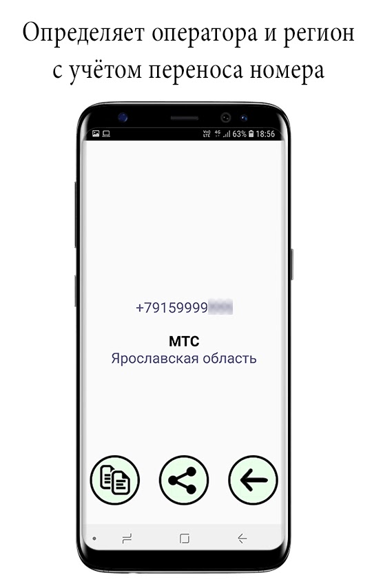 С помощью этого приложения Вы сможете узнавать по номеру телефона оператора сотовой связи (МТС, МегаФон, Билайн, Теле2, Yota и т.д.) и его регион. Всегда актуальная информация, т.к. приложение получает данные из онлайн базы.