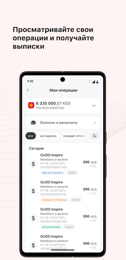 ◦ Совершайте мгновенные переводы вашим бизнес-партнерам в сомах и в валюте