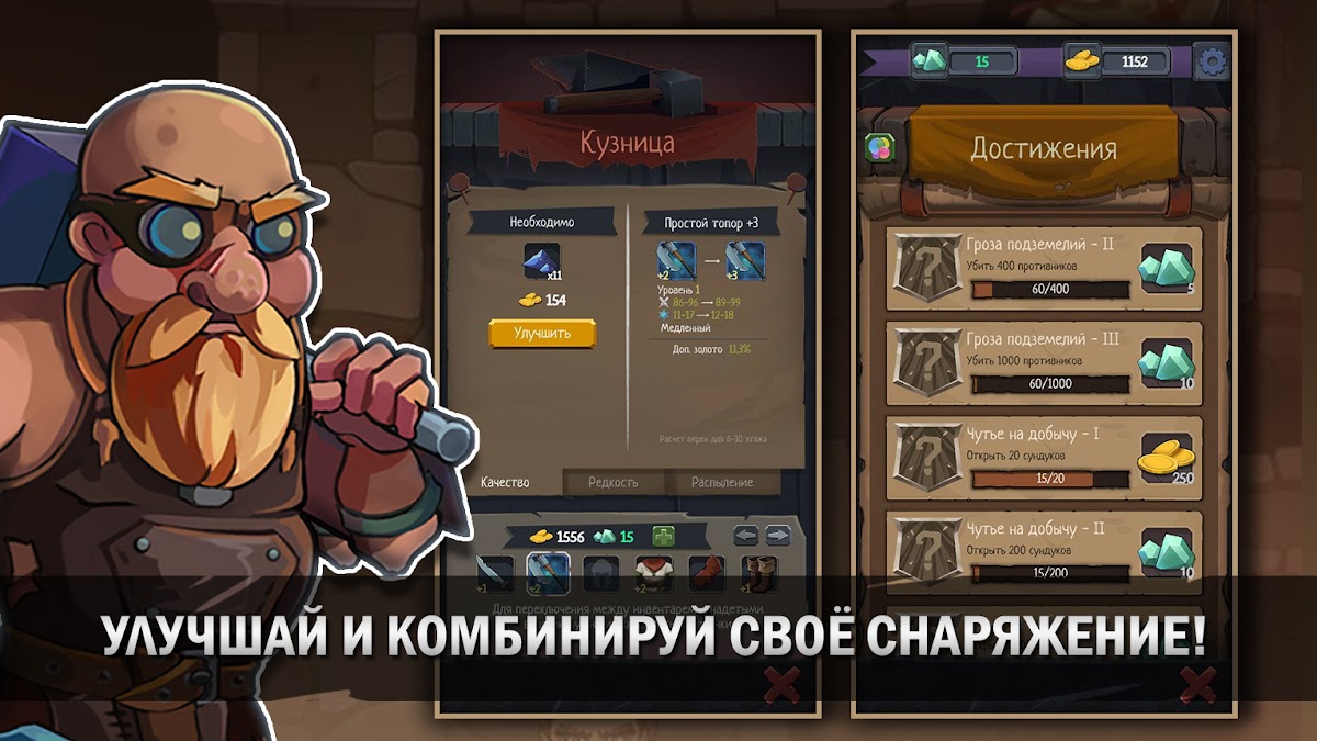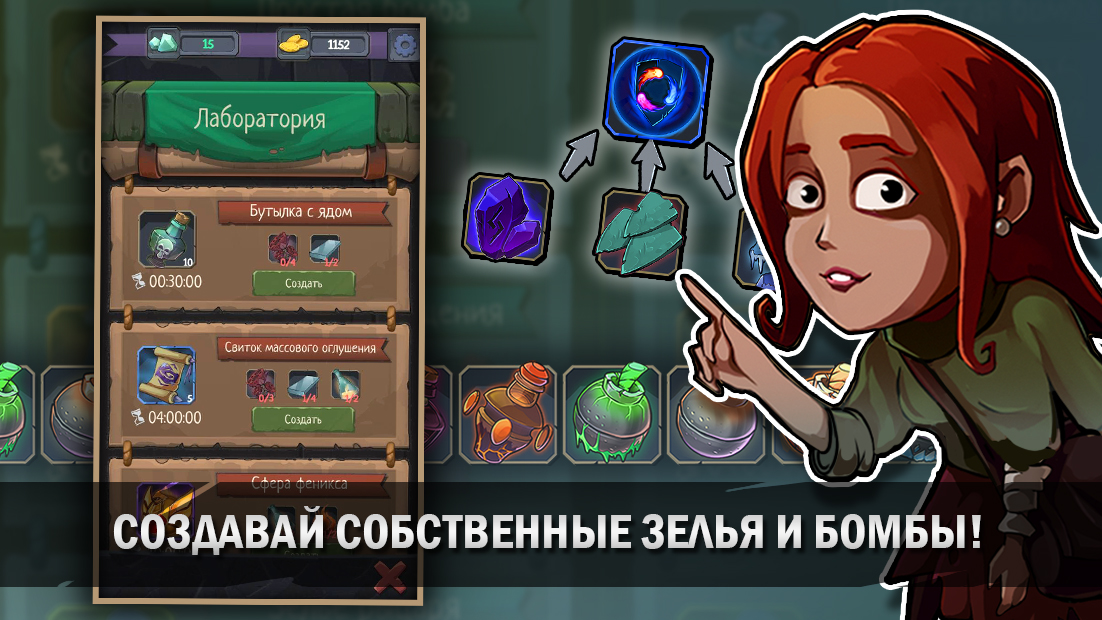 — Горы лута — оружие, экипировка, зелья, магические свитки, бомбы и другие предметы прячутся в темных уголках, толстых сундуках, закрытых комнатах или даже в карманах монстров. Не заставляйте их ждать!