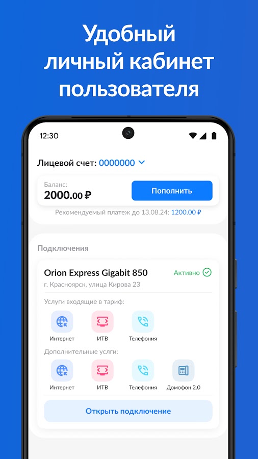Просматривайте подключенные тарифы и услуги, следите за балансом, получайте уведомления и пользуйтесь удобными способами пополнения в нашем приложении личного кабинета.