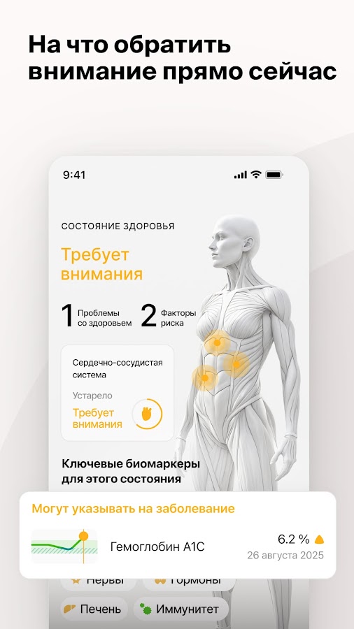 Вы сможете получить персональные рекомендации на основе ваших анализов, привычек и симптомов. Спрашивайте что угодно — от «Почему я все время чувствую усталость?» до «Что мне изменить в первую очередь?».