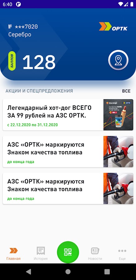 так же Вы сможете накапливать и списывать бонусные баллы, быть в курсе акций и получать эксклюзивные предложения, а также получать призы за покупки на АЗС сети ОРТК.