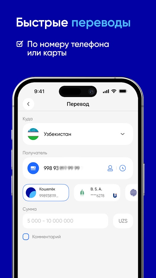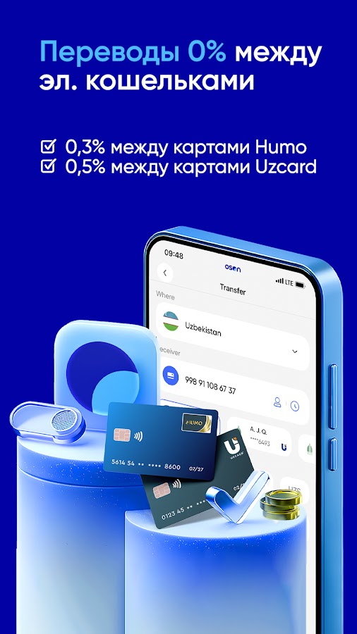 — Универсальные переводы — будь то карта VISA, Mastercard, HUMO или UZCARD — добавьте их в OSON и используйте для мгновенных транзакций.