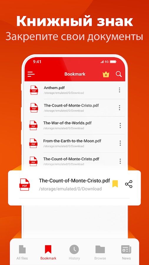✔ Открытие PDF-файлов из хранилища или электронной почты