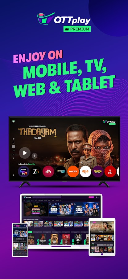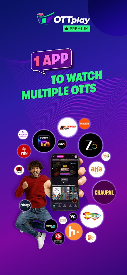 Перестаньте переключаться между приложениями! OTTplay объединяет ведущие платформы, такие как Amazon Prime Lite, Sony LIV, ZEE5, Lionsgate Play, Sun NXT, Aha, ShemarooMe, FanCode, Discovery+ и многие другие. Наслаждайтесь блокбастерами, популярными веб-сериалами, прямыми трансляциями спортивных событий, документальными фильмами, детским контентом и региональными хитами на всех основных языках.