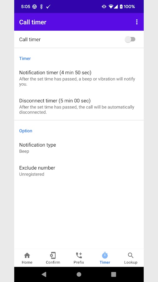 ◆ Таймер продолжительности звонка