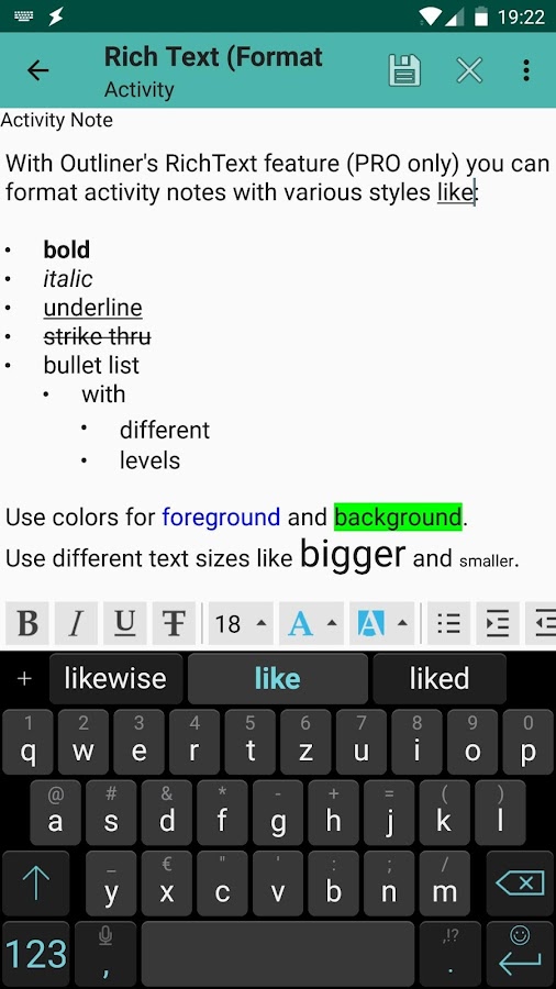 Чтобы получить функции PRO, установите «Outliner Pro Key» из магазина Google Play.
