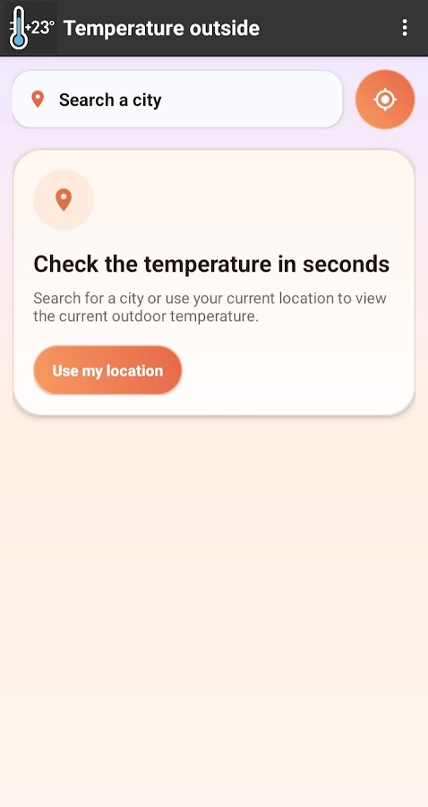 Приложение показывает только самое важное: текущую температуру рядом с вами, быстро и без лишней сложности. Перед прогулкой, поездкой, занятием спортом на улице или просто чтобы понять, холодно сейчас или тепло, вы получите полезную информацию почти мгновенно.