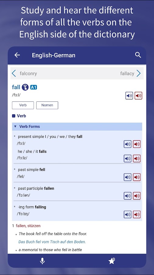 • Используйте полнотекстовый поиск, чтобы найти свое слово в любой фразе или примере предложения в словаре.