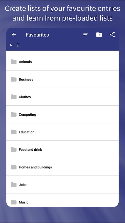 • Создайте свой собственный список любимых слов и создавайте папки для их систематизации и хранения.