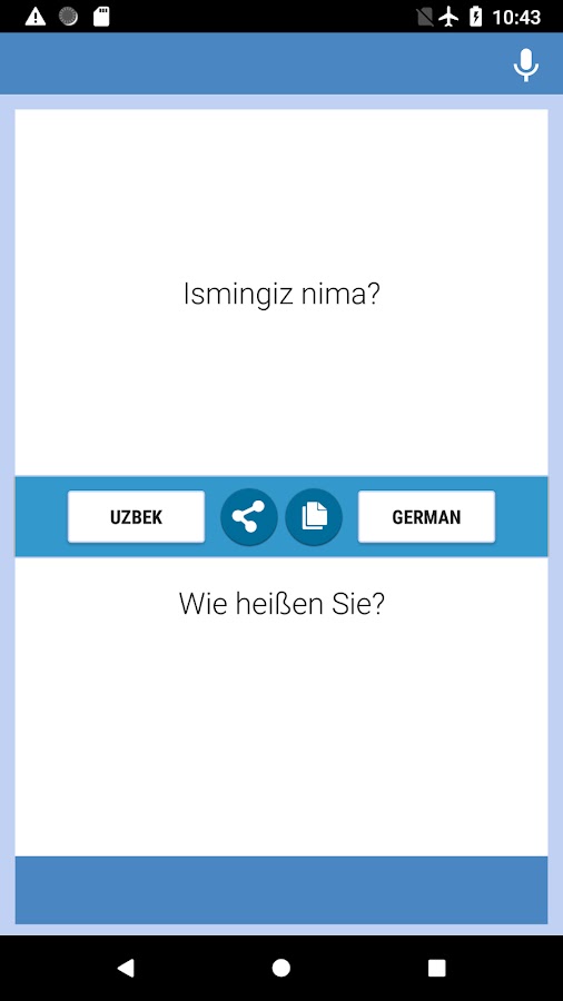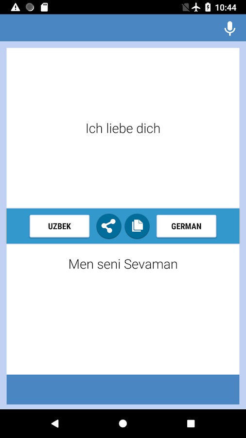 Узбекско-немецкий переводчик приложение — это бесплатно и простой в использовании. Вы можете перевести узбекские тексты и письма от узбекского Немецко. Вы можете использовать этот конвертер в работе, в школе, знакомство, во время путешествия или во время использования в бизнесе, чтобы улучшить свое мастерство этих двух языков, и вы можете, как узбекско-немецкие и немецко-узбекский конвертер, переводчики, использование словаря.