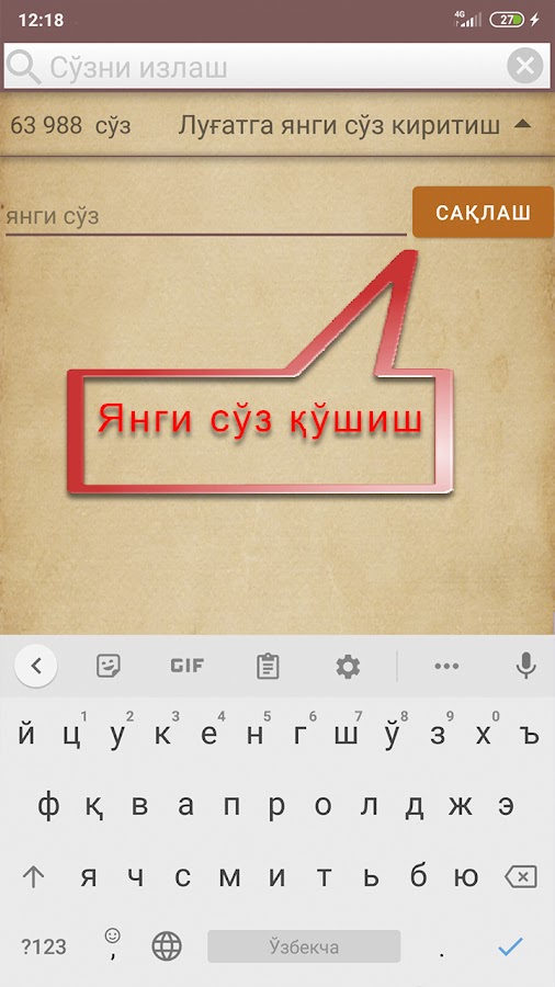 Луғатга янги сўзларни қўшиш имкони мавжуд.