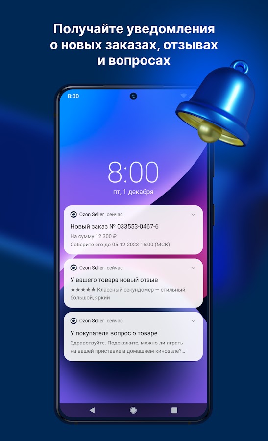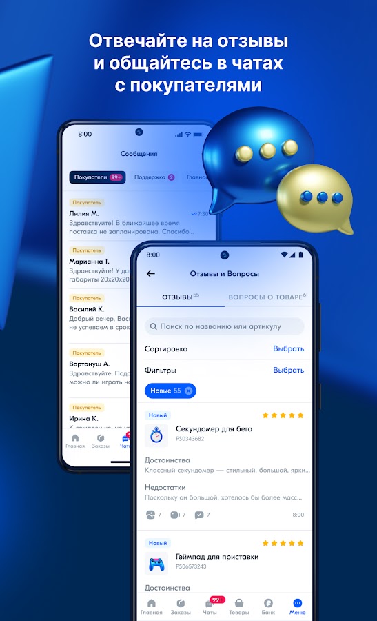 — получайте уведомления о новых заказах, возвратах, отзывах и последних новостях маркетплейса;
