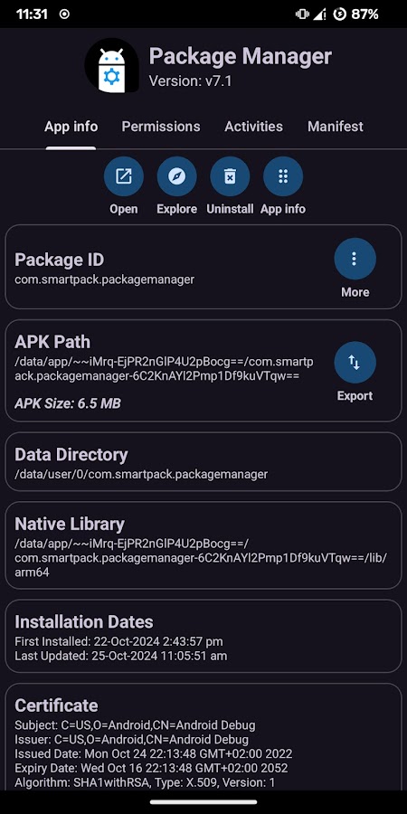 🔸 Исследуйте и экспортируйте содержимое установленного приложения (экспериментально).