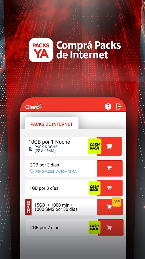 Доступно для линий предоплаты Claro, Plan Control и Plan Libre.